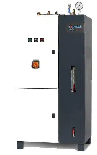 De compacte elektrische stoomketel Certuss E72 voor maximaal 97 kgh is het type dat wij aanbieden ter verhuur. In batterij opstelling is er maximaal 194 kgh stoom beschikbaar. De druk is instelbaar van 4 tot 6 bar. Overige drukken zijn bespreekbaar. Deze elektrische stoomketel is tot 6 bar vrij van keur PED. Kortom, zeer geschikt voor toepassingen waar tijdelijk stoom is gewenst. Voor meer technische details kunt u contact met ons opnemen.