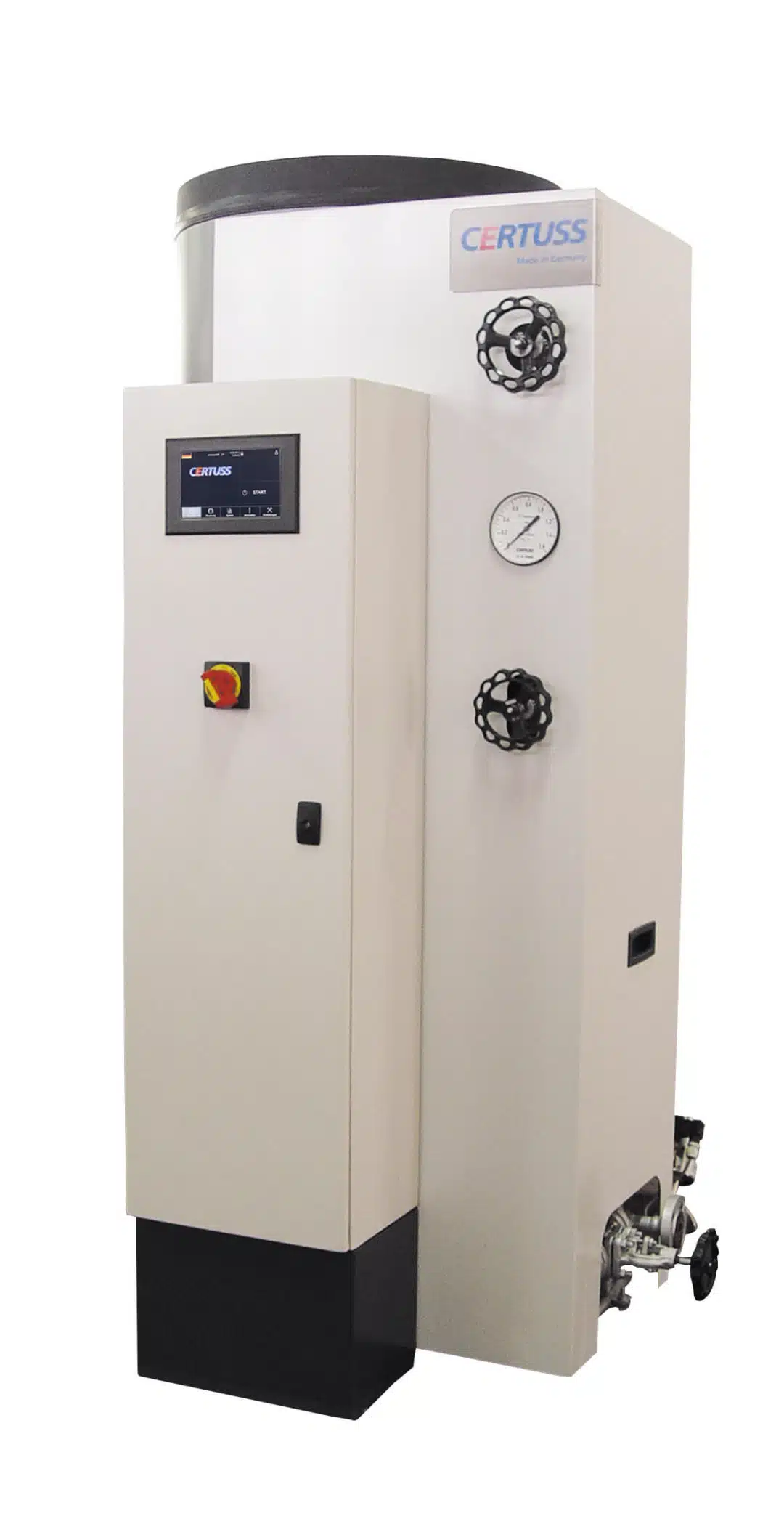 De Certuss stoomketel serie Junior TC met een stoomproductie van 80 t/m 400 kgh is de nieuwe standaard voor stoomgeneratoren. Dankzij een rendement tot 94% bij vollast is deze stoomketel zeer zuinig. In combinatie met een enkele economizer is een rendement van 98% bereikbaar, bij toepassing van een dubbele economizer zelfs 102%. De Certuss TC serie is voorzien van een touchscreen voor een grafisch ondersteunde bediening.